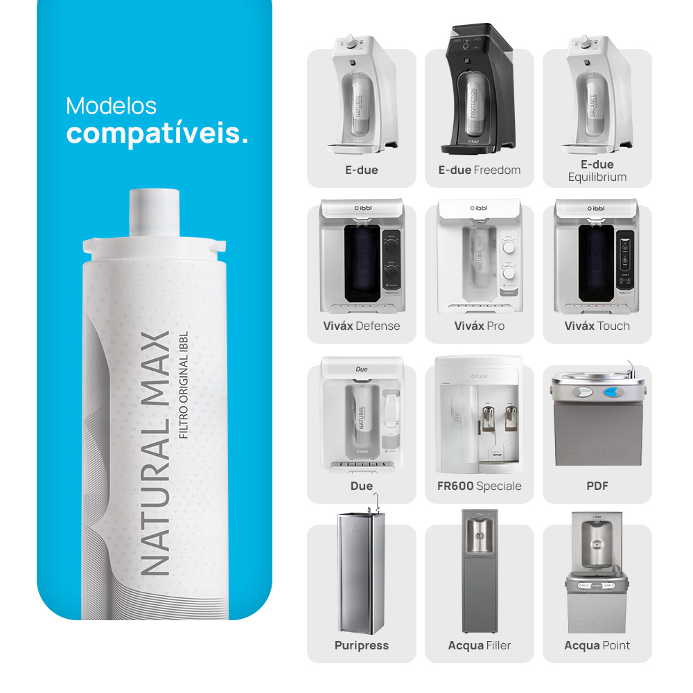 Os filtros originais IBBL são desenvolvidos sob medida para cada modelo de purificador e bebedouro da marca, garantindo máximo desempenho e água sempre pura. Para facilitar a sua escolha, confira na imagem ao lado os modelos compatíveis com cada refil e tenha a certeza de estar adquirindo a opção correta para o seu equipamento. Usar o filtro indicado é fundamental para preservar a eficiência da filtragem, prolongar a vida útil do aparelho e manter a qualidade da água que você e sua família consomem todos os dias.